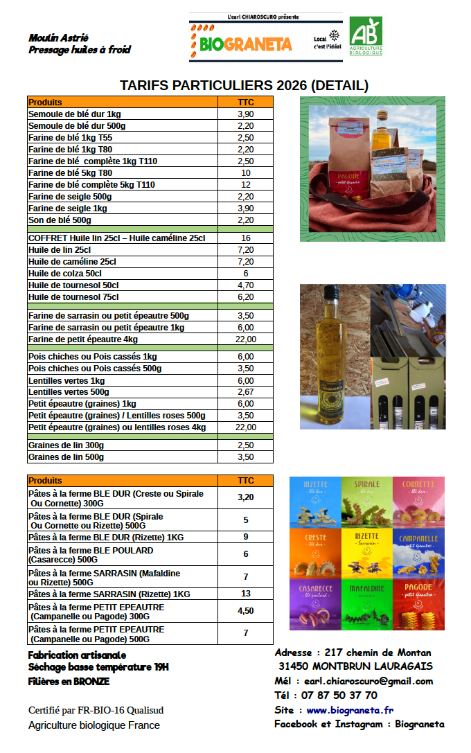 Nous avons le privilège de semer des petites graines BIO en Occitanie, petites graines qui donneront de belles cultures que nous transformerons par la suite en farines, huiles et pâtes BIO. En occitan, « petite graine » se dit GRANETA